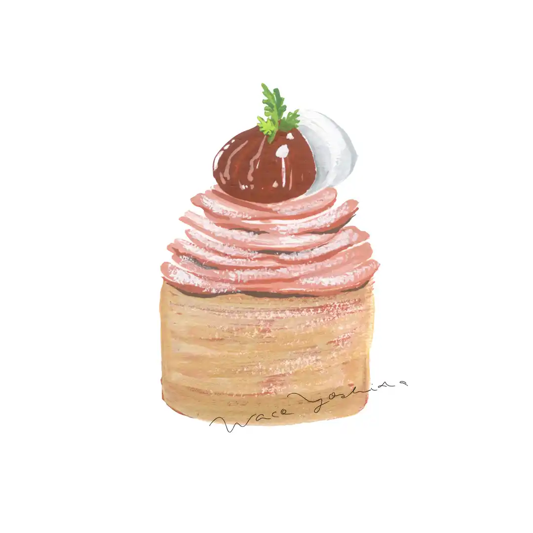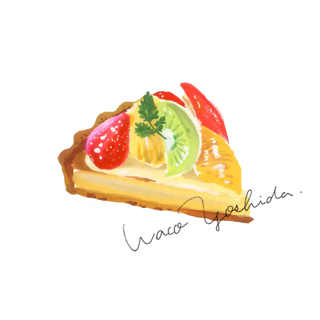 色とりどりのケーキたち。ガッシュ(不透明水彩絵の具)で描きました。